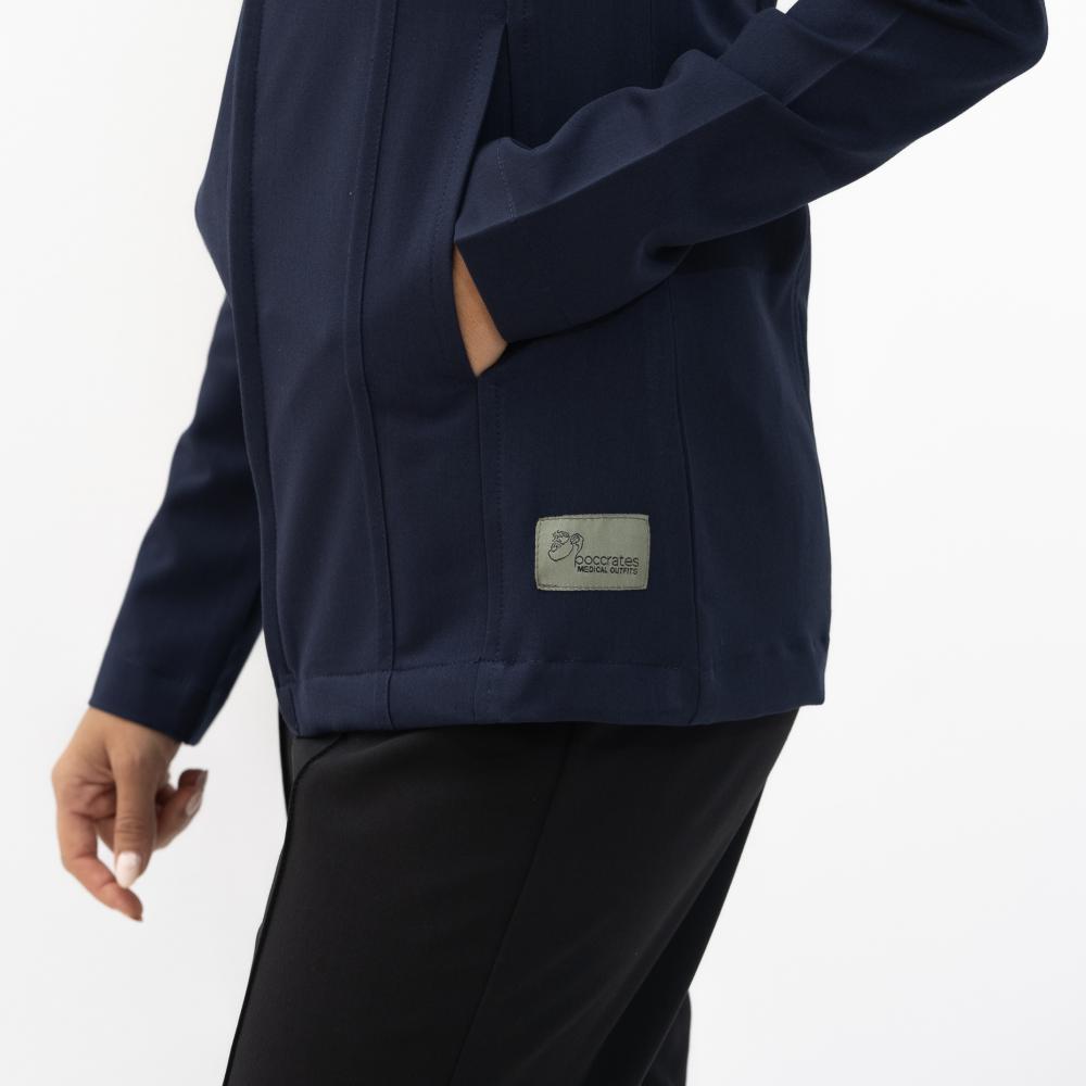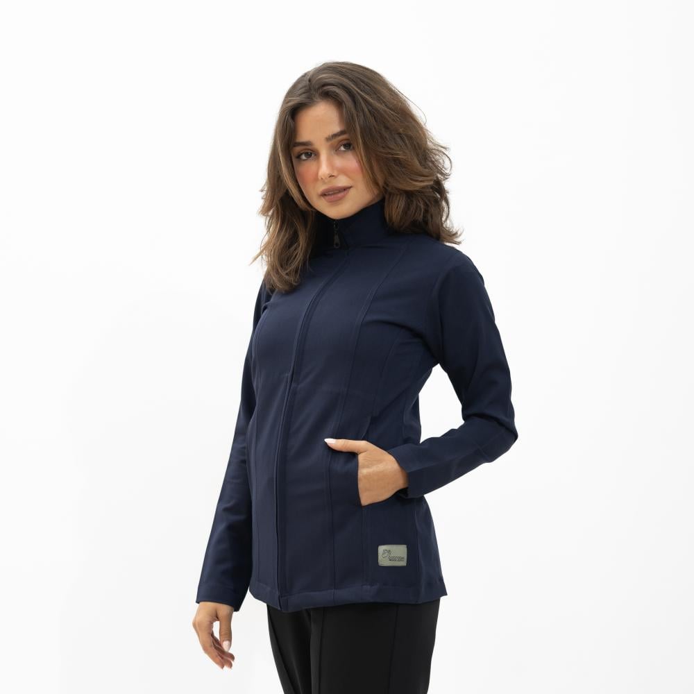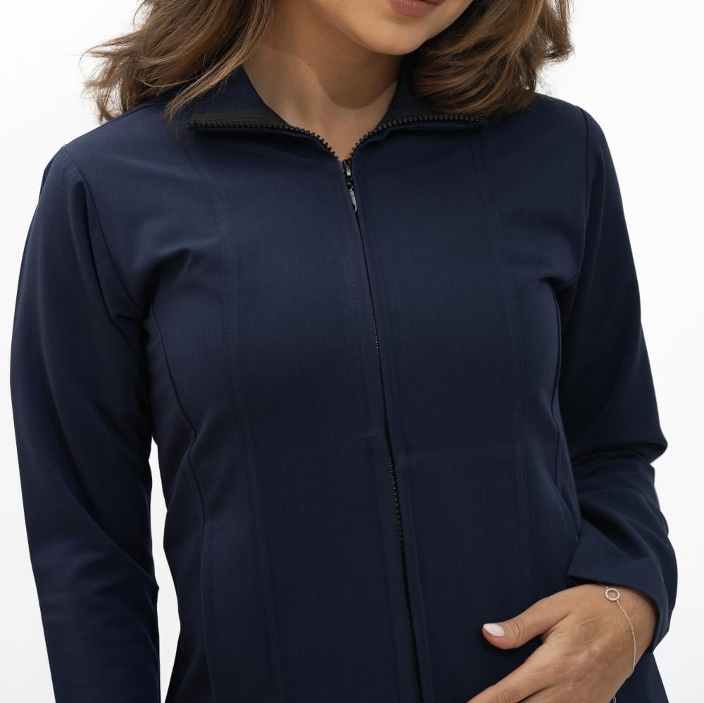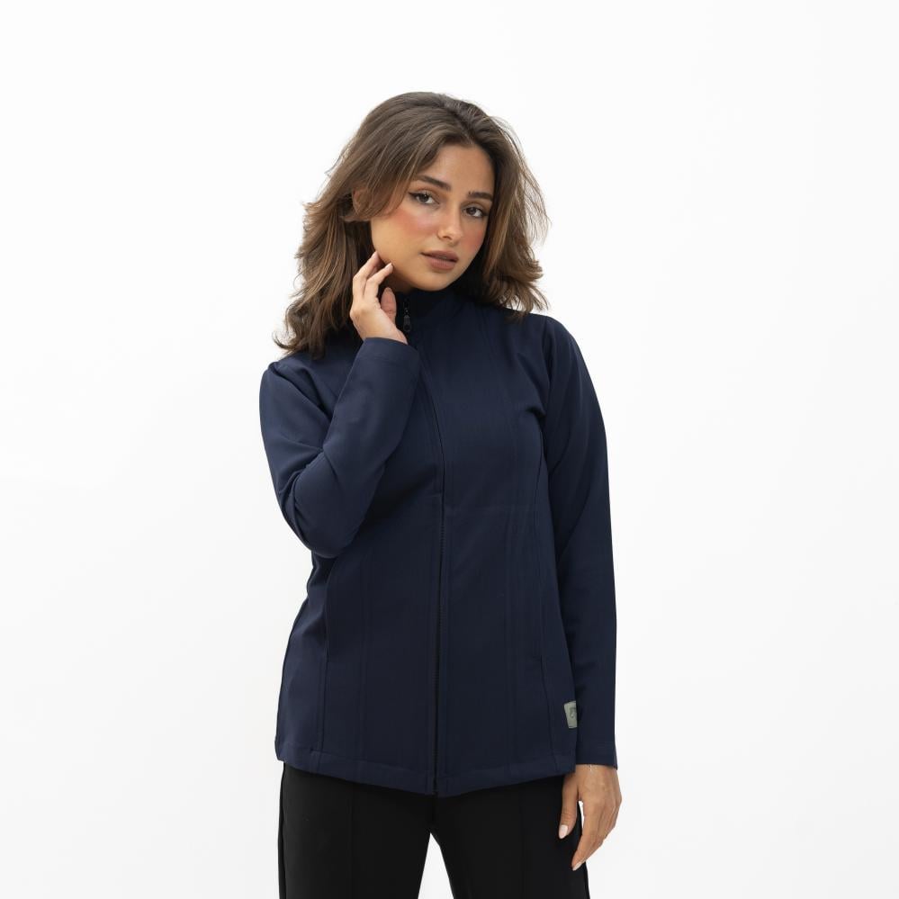 جاكت كحلي نسائي بسحاب امامي يتميز بتصميم وجودة عالية.